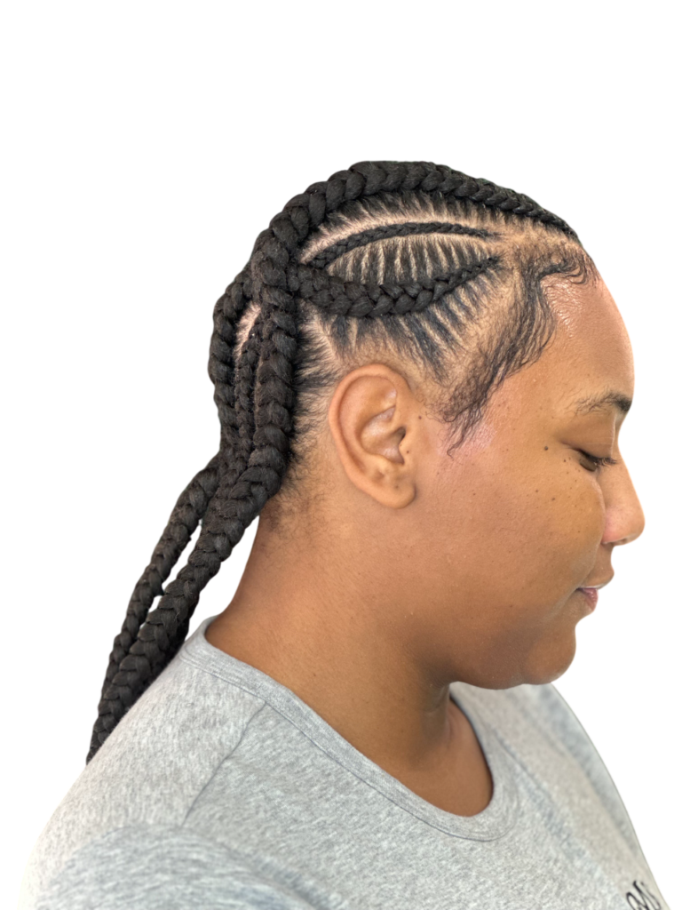 Our expert braiders craft smooth, even rows that protect your natural hair while giving you a polished, long-lasting style. Whether you choose simple straight-backs or a customized pattern, each braid is designed with care, comfort, and attention to detail. With our cornrows, you’ll enjoy a neat, confident look that stands out effortlessly.With a focus on neatness, precision, and the health of your natural hair, our cornrows deliver a sleek, polished finish that you can wear proudly for any occasion—from casual days to special events.